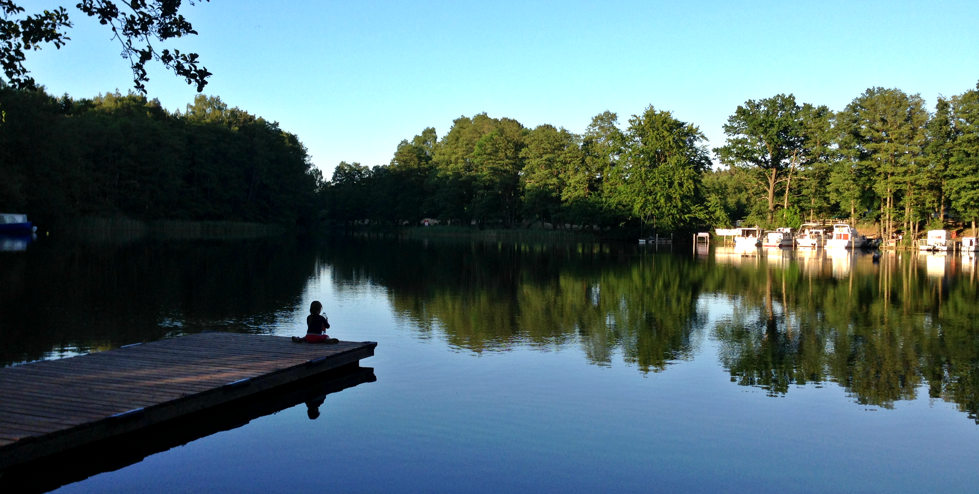 An unserem ersten Abend wollten meine Frau und ich uns schön draußen in den Innenhof setzen, als die Kinder schliefen. Ich hatte eine Flasche Wein kalt gestellt, der Himmel war dunkelblau und die Temperaturen noch bei lauschigen 20 Grad. Leider waren die lokalen Mücken in bestechender Form, so dass wir nach 10 Minuten entnervt aufgeben mussten. Überhaupt, wer bei Familienurlaub an Erholung denkt, der war noch nicht im Familienurlaub. Töchterchen hatte sich als Lieblingsplatz direkt den langen Steg am See ausgesucht, der uns aufgrund mangelnder Schwimmskills ihrerseits in permanente Alarmbereitschaft versetzte.