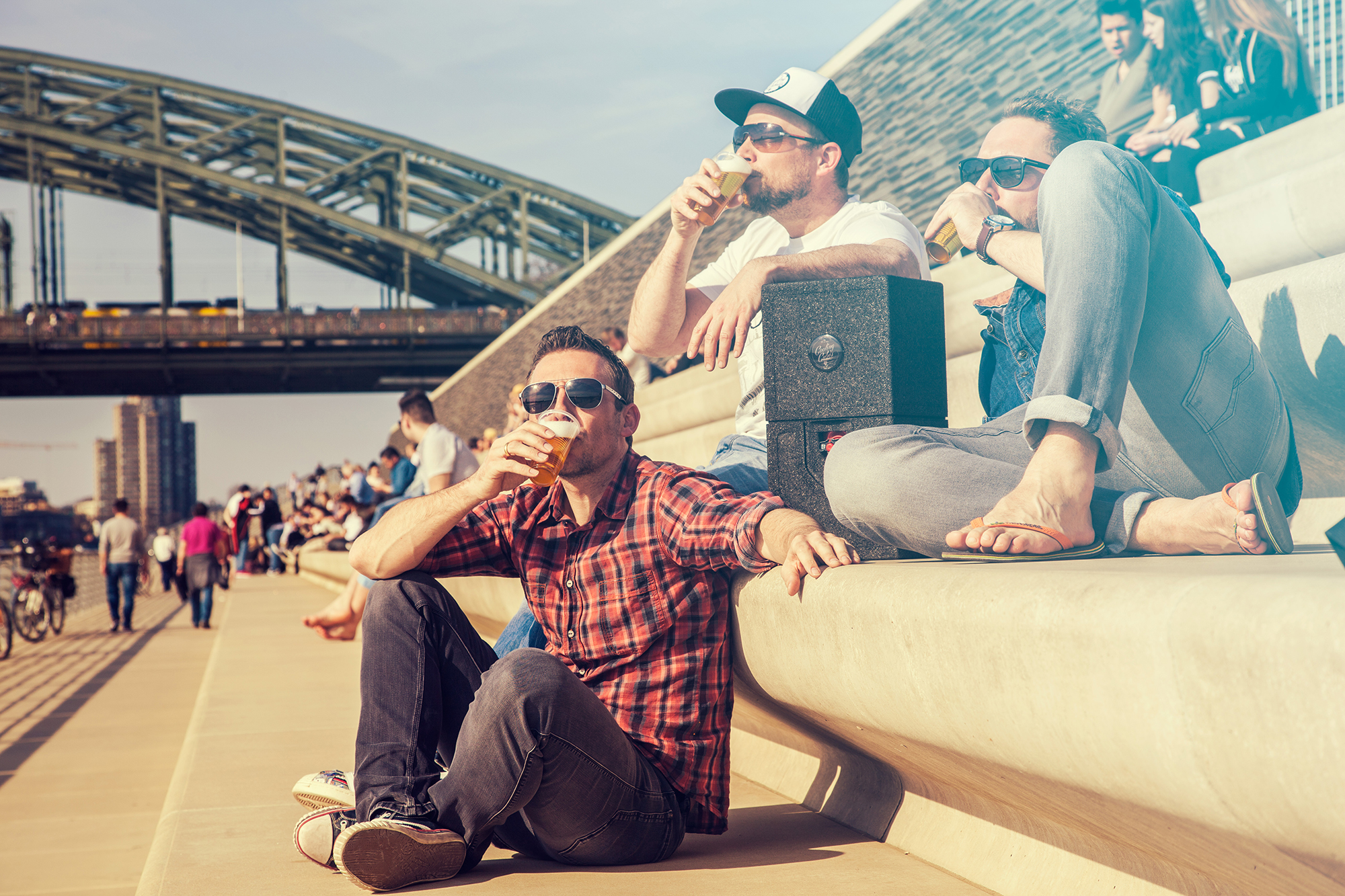 Die Kölner Gründer Volker Brock, Ingo Runkel und Markus Engelbertz haben da was ziemlich Cooles entworfen. Diese bunten Boxen mit geschütztem Kühlsystem halten ein fünf Liter Partyfass nämlich über 24 Stunden kalt.
