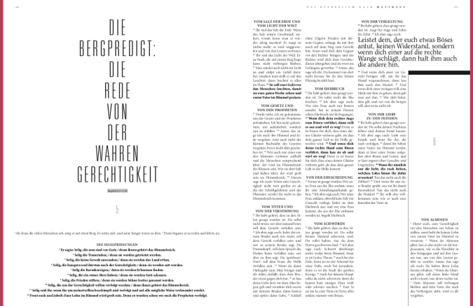 Es gab und gibt immer mal wieder Stimmen, die sagen: ‚Darf man das? Den Text der Heiligen Schrift gewichten?‘ Wir stellen aber immer wieder fest, dass die Kritik umgehend in Begeisterung umschlägt, wenn diese Leute dann mal in unserem Magazin blättern und lesen. Dann stellen sie schnell fest, dass auch die Gewichtung, das Herausstellen einzelner Textpassagen, immer der Lesbarkeit dient und keinem inhaltlichen Schema folgt.