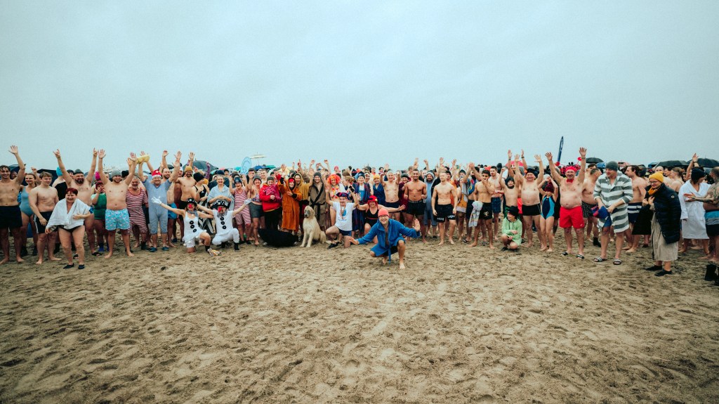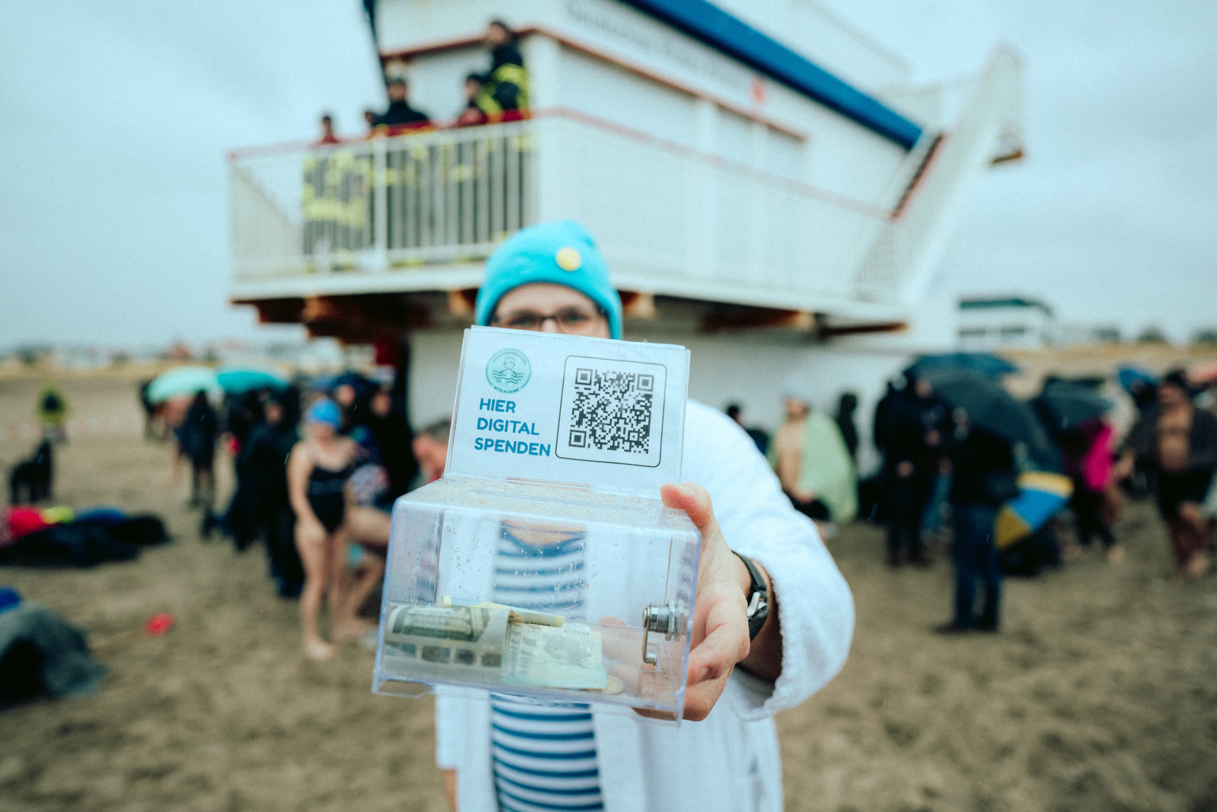 ➪ Wie hatten am 1.1.2024 das große Neujahrsbaden am Strand von Warnemünde. 284 (!) Mutige waren im eisigen Wasser. Absoluter Rekord.