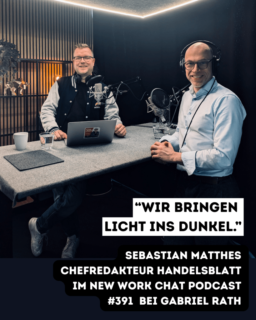 Es ist eine große Ehre für mich, euch Folge 391 meines New Work Chat Podcasts vorzustellen, denn heute ist der Chefredakteur des Handelsblatts himself bei mir am Mikrofon.