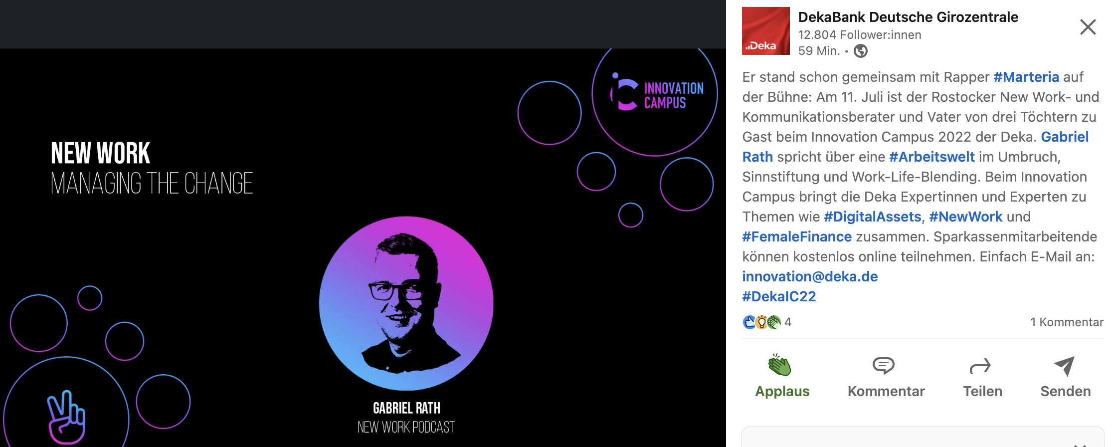 Nie zuvor in der Geschichte der Menschheit hatten wir bessere Werkzeuge, die uns schneller und effektiver arbeiten lassen. Die Ki Revolution treibt das Veränderungstempo und eröffnet uns täglich neue Möglichkeiten. Doch steigt der Frust. In der Gallup Studie sehen wir Jahr für Jahr die Unzufriedenheit vieler Menschen, die zwar Dienst nach Vorschrift machen, aber sich eine bessere Zukunft wünschen. Wie es gelingt, sich selbst neu zu erfinden und den Pivot zu wagen wie ein Startup, um neu durchzustarten und AI als Antrieb zu nutzen, das erklärt Podcaster und Storytelling Experte Gabriel Rath in seiner Keynote.